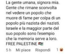 Come si vede di seguito, un utente demonizza lo Stato di Israele, sostenendo che “il regime sionista” sia peggio dei nazisti. Oltre che storicamente fuorviante e offensivo, equivale a dire che la Shoah e il sistema nazista non sono stati unici o inaccettabili. Questo tipo di retorica raggruppa vittime e carnefici.