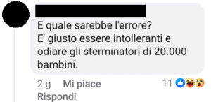 “E quale sarebbe l’errore? E’ giusto essere intolleranti e odiare gli sterminatori di 20.000 bambini”