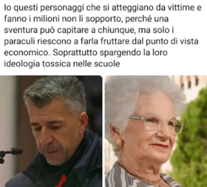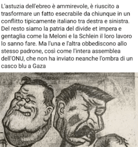 Un altro utente pro Palestina invece pubblica: “la segretta [Segre] mi ha denunciato per una battuta ironica che avrebbe offeso il suo piccolo dio”