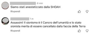 Altri utenti scrivono sotto un post: “Assassini! Il sionismo è il cancro dell’umanità e lo stato sionista merita di essere cancellato dalla faccia della Terra”