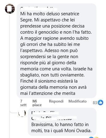 Nei commenti analizzati emerge un clima di ostilità estremamente accentuato e diffuso, che supera ampiamente la dimensione della critica politica o dell’opinione personale per assumere connotazioni fortemente aggressive, denigratorie e, in diversi passaggi, apertamente disumanizzanti. La figura pubblica oggetto della discussione viene costantemente delegittimata attraverso insulti personali, attacchi all’età, all’identità e al ruolo istituzionale, mentre il tema della Giornata della Memoria viene presentato come strumentale, ipocrita o moralmente privo di valore. Molti interventi costruiscono una narrazione che sovrappone sistematicamente memoria della Shoah, politica dello Stato di Israele e identità ebraica, eliminando ogni distinzione tra responsabilità storiche, scelte governative contemporanee e appartenenze culturali o religiose. Questa fusione produce generalizzazioni collettive e accuse totalizzanti, nelle quali intere categorie di persone vengono rappresentate come moralmente colpevoli, crudeli o indegne di riconoscimento storico. La memoria dell’Olocausto viene frequentemente relativizzata o reinterpretata attraverso il confronto diretto con conflitti contemporanei, utilizzato non come strumento di riflessione comparativa ma come mezzo per svuotare di significato la commemorazione stessa. In numerosi commenti il ricordo delle vittime viene trasformato in un terreno di scontro simbolico, in cui la sofferenza storica viene contrapposta ad altre tragedie con l’obiettivo di delegittimare il valore universale della memoria. Dal punto di vista linguistico si osserva un uso ricorrente di espressioni fortemente violente, volgari e insultanti. Sono presenti attacchi personali diretti, espressioni di disgusto, tentativi di ridicolizzazione e, in alcuni casi, affermazioni che augurano la morte o la scomparsa di persone reali. Questo linguaggio contribuisce a creare una rappresentazione disumanizzante e intimidatoria, che sposta il confronto dal piano argomentativo a quello dell’aggressione personale e simbolica. Particolarmente rilevante è la dinamica di normalizzazione di tali contenuti all’interno della discussione. Commenti caratterizzati da forte ostilità ricevono un ampio consenso attraverso reazioni positive e rilanci, generando un effetto di rafforzamento reciproco che favorisce la radicalizzazione del discorso. Nel complesso, la conversazione mostra come il confine tra critica politica, polemica ideologica e incitamento all’odio risulti fortemente attenuato. Il dibattito non appare orientato alla comprensione storica o alla discussione delle responsabilità contemporanee, ma tende a riprodurre stereotipi, accuse collettive e narrazioni antagonistiche. La memoria della Shoah viene così strumentalizzata, relativizzata o aggredita, contribuendo alla diffusione di un linguaggio divisivo e alla progressiva normalizzazione dell’ostilità etnica, religiosa e identitaria nel contesto del dibattito online.