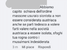 Utente di origine araba si scaglia nei commenti contro una donna.