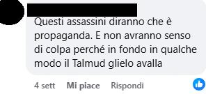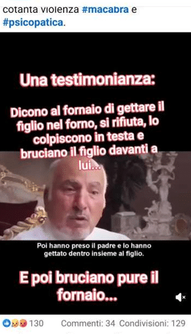 Senatrice della Repubblica di un partito populista italiano pubblica un video di disinformazione in arabo di un uomo che dice che gli ebrei minacciano un fornaio di buttare il figlio nel forno, e al suo rifiuto lo hanno bruciato vivo davanti al padre.