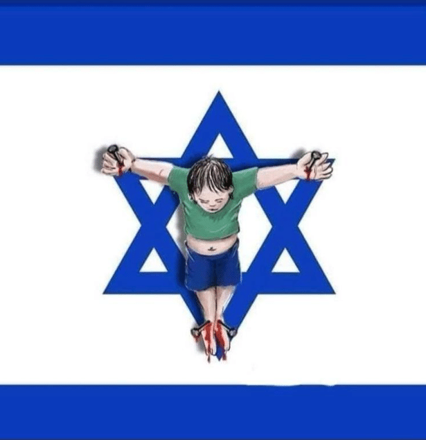 Utente italiano su Facebook ha ricondiviso questa immagine di un bambino crocifisso sulla Stella di Davide.