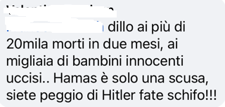 Donna riceve insulti gravemente antisemiti e con speranze di morte come «se quella volta vi avessero sterminato tutti vivremmo in un mondo migliore» oppure «Siete peggio di Hitler fate schifo» sotto un post dell’Huffpost Italia su Facebook.