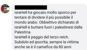 “IsraHEll è peggio del terzo reich. Subdolo ed ipocrita, sempre la vittima anche se è il carnefice da 80 anni”