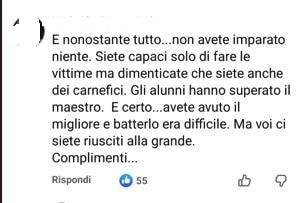 «Siete capaci solo di fare le vittime ma dimenticate che siete anche dei carnefici. Gli alunni hanno superato il maestro. E certo…avete avuto il migliore e batterlo era difficile. Ma voi ci siete riusciti alla grande.»