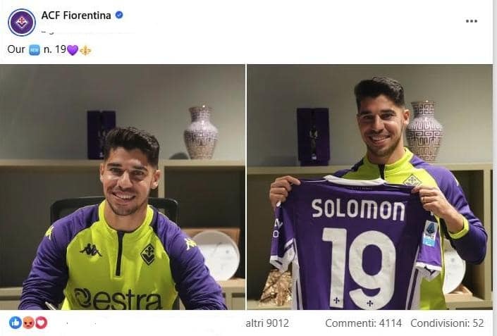 Il passaggio del calciatore israeliano Manor Solomon dalla squadra spagnola del Villareal a quella italiana della Fiorentina viene accolto da numerosi post antisemiti sulle piattaforme sociali. Lo sportivo viene demonizzato in varie forme e, soprattutto, tacciato di essere una sorta di nazista complice del “genocidio” dei palestinesi. Insulti e beceraggini antisemiti non travolgono solo Solomon ma anche gli internauti che gli manifestano simpatia, cui i pro pal scrivono «ti saluta zio adolfo» o «Birkenau is your home».