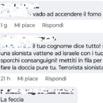 Utenti Facebook continuano a postare commenti antisemiti ispirati al cobflitto tra Hamas ed Israele ed alla vicenda della trattoria napoletana pro pal. I post antisemiti sono spesso violenti ed incentrati su grevi fantasie di morte ispirate alla Shoah. Qualche esempio: «Siete un cancro per il pianeta! e sarete maledetti per l’eternità..ah no aspetta vi avevano già maledetti…Hitler non h completato l’opera purtroppo…Riaprire i lager. Così rimembrano…vado ad accendere il forno…sei una sionista vattene ad Israele con i tuoi sporchi consanguinei! mettiti in fila per fare la doccia pure tu. Terrorista sionista».