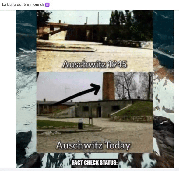 Definire come “balla” lo sterminio di sei milioni di ebrei equivale a negare o minimizzare un fatto storico accertato da una mole imponente di prove documentali, testimonianze, sentenze giudiziarie e ricerche accademiche. Il richiamo alla Stella di David non è neutro: serve a identificare gli ebrei come soggetto collettivo della presunta menzogna, insinuando che abbiano inventato o manipolato la Shoah.