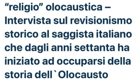 Utente Facebook linka sul suo profilo la pagina di un blog neonazista ed islamista contenente un’ opera negazionista, seguono commenti infarciti di miti complottisti (es. furono gli ebrei ashkenaziti a sterminare gli ebrei veri durante la seconda guerra mondiale) ed antigiudaici.