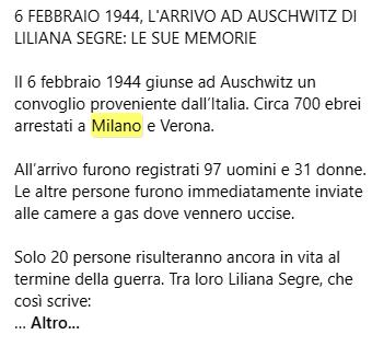 È un post Facebook che ricorda l’arrivo di Liliana Segre ad Auschwitz il 6 febbraio 1944, riportando un intenso estratto delle sue memorie. Il testo sottolinea l’orrore delle selezioni e il dolore del rimorso per l’amica Janine, simbolo dell’umanità negata nei lager.
