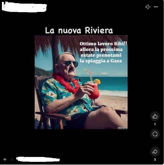 Stampa 2 Gennaio 2025 Facebook, post antisemiti Fonte: Segnalazione «Ottimo lavoro Bibi !!» Utente Facebook pubblica post (specie reels da TikTok) antisionisti e di distorsione del nazifascismo.