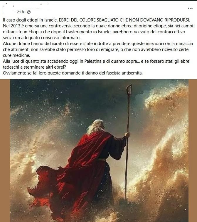 Utente Facebook posta commenti contro gli ebrei dai toni deliranti e che riprendono miti di accusa di stampo cospirativo, ovvero sostiene che la Shoah sia opera degli stessi ebrei («e se fossero stato gli ebrei tedeschi a sterminare altri ebrei?»), e auspica la distruzione dello Stato di Israele che ritiene speculare alla Germania nazista: «La lezione degli anni ’30 era chiara: l’impunità alimenta i regimi. Eppure oggi guardiamo Israele fare lo stesso, senza conseguenze…penso che Israele deve essere raso al suolo».