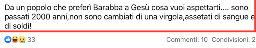 Utente Facebook posta grevi commenti antisemiti ispirati al conflitto tra Hamas ed Israele.