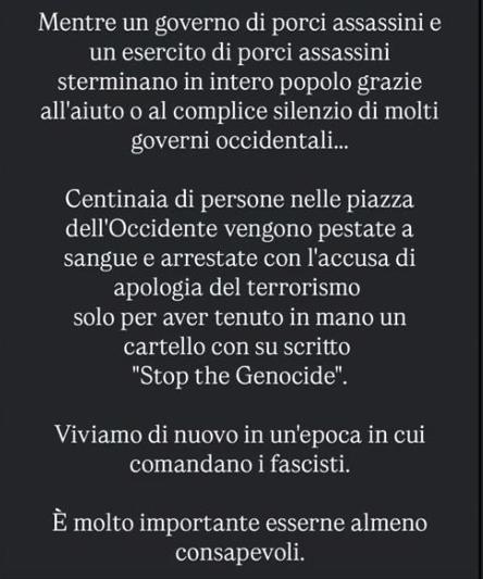 Noto personaggio televisivo, con circa 240mila followers su Facebook, posta sul suo profilo una grande quantità di contenuti pro pal dai toni antisemiti.