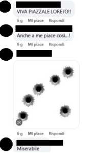 Fomentatore estremista, da anni impegnato nel supporto della lotta palestinese, pubblica post di odio contro Pina Picerno – una sua fotografia rivolta a testa in giù. Gli altri contatti commentano con insulti, incitando alla violenza: “Viva Piazzale Loreto”, “miserabile”.