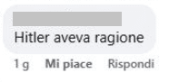 Stampa 17 Giugno 2025 Facebook, utente ad una donna ebrea: “Hitler aveva ragione” Luogo: Facebook Fonte: Segnalazione CE “Hitler aveva ragione” Una signora ebrea pubblica un post su Facebook parlando di un libro e un altro utente italiano le commenta così la foto.