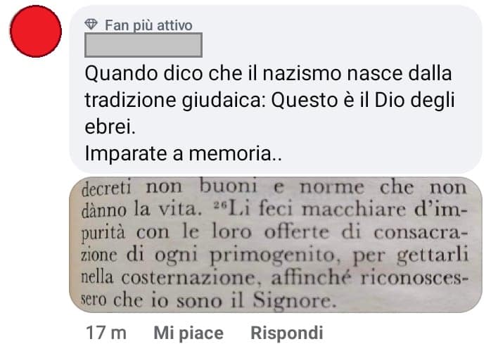 Stampa 30 Maggio 2024 Facebook, utente afferma che il nazismo nasce dalla tradizione ebraica Luogo: Facebook Fonte: Segnalazione “Quando dico che il nazismo nasce dalla tradizione giudaica: Questo è il Dio degli ebrei”.