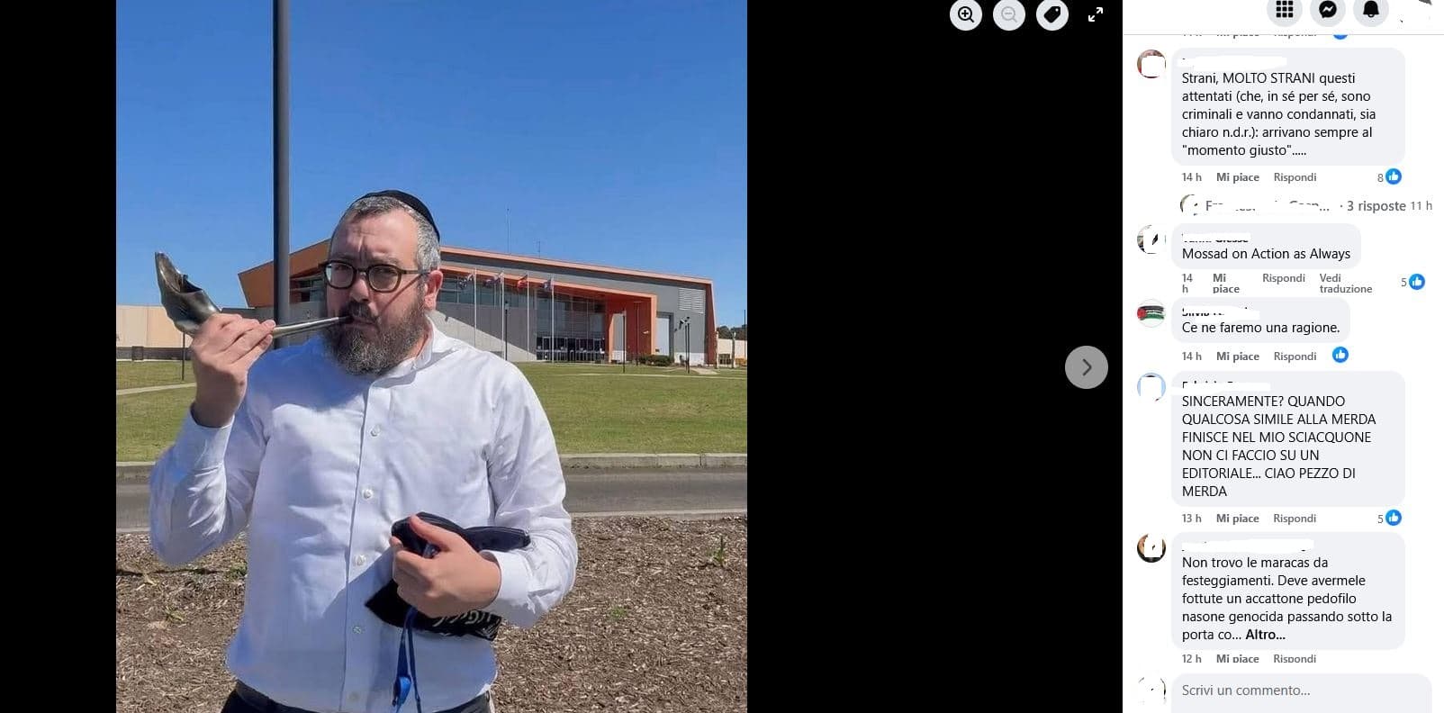 2_4 Pubblicata il 15 Gennaio 2026 alle 1604 × 792 in Facebook, utenti celebrano l’uccisione di un rabbino australiano