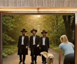 Una pagina con 11.000 iscritti genera video con intelligenza artificiale nella quale tre ragazzi identificati immediatamente come ebrei, per via del vestiario, si impossessano di un telefono e di un cane perché “gli è stato promesso 3000 anni fa” – un chiaro riferimento all’attualità. Quando cercano di impossessarsi di una casa, il proprietario gli dice di essere tedesco e fuggono.