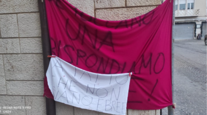 A seguito di alcune manifestazioni in difesa sulle donne, in piazza a Fano è stato esposto un drappo recitante: «Se toccano una rispondiamo tutte». Venerdì mattina è stato esposto da ignoti un secondo drappo a completare lo slogan, recitante la seguente frase carica d’odio: «A patto che non siano ebree», in contrasto con la violenza che molte donne israeliane hanno subito il 7 ottobre 2023 ad opera dei terroristi di Hamas.