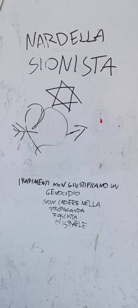 Stampa 4 Giugno 2024 Firenze, apparsa una scritta con contenuti antisemiti sul muro della via Luogo: Firenze Fonte: Segnalazione CE Firenze, Le Murate, sul lato di via dell’Agnolo.