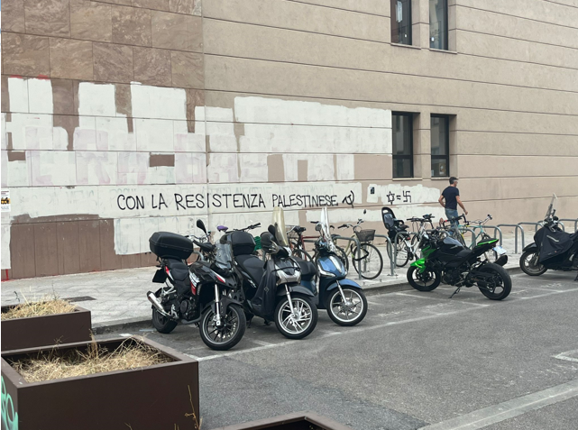 Firenze. In diverse zone della città, tra cui la Facoltà di Scienze Politiche UniFi, vicino all’Ospedale Mayer, a Via Morgagni nei pressi della Casa dello Studente, a Careggi, sono comparsi graffiti antisemiti, a favore della “resistenza” palestinese e contro Israele. Compaiono anche stelle di David equiparate a svastiche.