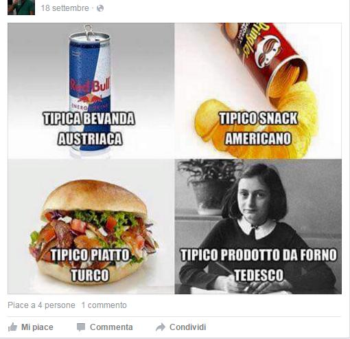 MicheleS_18sett_AFrank Pubblicata il 20 Ottobre 2015 alle 510 × 493 in Fotomontaggi antisemiti e negazionisti su Facebook