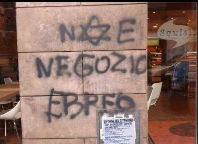 «Negozio ebreo», con la stella di David, oltre a «no ebrei ai Colli», alcuni dei graffiti antisemiti, ci sono anche dei riferimenti al ristorante “Squisì” e al suo titolare: «Negozio ebreo» (insieme ad una svastica) e «Stefano Giudeo».