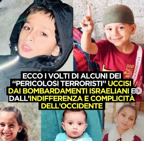 Canale informativo posta sul suo canale Instagram una notizia sulla morte di bambini palestinesi ad opera delle forze armate di Israele, seguono centinaia di commenti di odio ed auguri di morte contro i “sionisti”, insulti alla senatrice Liliana Segre accusata di essere una “sionista complice del genocidio dei palestinesi”. Frequente anche l’uso di narrative antigiudaiche, ovvero la crudeltà sanguinaria che sarebbe insita nei “sionisti” sarebbe frutto di una religione ebraica razzista e xenofoba.