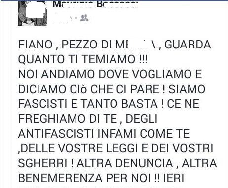 «Ci vediamo in piazza»; «festeggiate voi che poi festeggiamo noi». Dopo l’approvazione da parte della Camera del disegno di legge che stabilisce il reato di propaganda fascista, dal web sono piovuti insulti e minacce all’indirizzo del primo firmatario della proposta, il deputato Pd Emanuele Fiano. Tra i più scatenati sui social media anche alcune vecchie conoscenza dell’estremismo «nero». «Ogni tanto mi riprende la nostalgia dei bei vecchi tempi della galera», ha tuonato sul suo profilo Facebook Mario Tuti, fondatore negli Anni 70 del Fronte Nazionale Rivoluzionario. Intenzioni ancor più chiare quelle espresse dall’ex terrorista Maurizio Murelli, già condannato a 18 anni di carcere per omicidio: «Io credo che sia giusto abradere Israele dalla Palestina… Non prima di averci mandato Fiano». Non si è fatta attendere la reazione del deputato Pd: «Ogni minaccia va presa sul serio, ma certo non ci faremo intimidire».