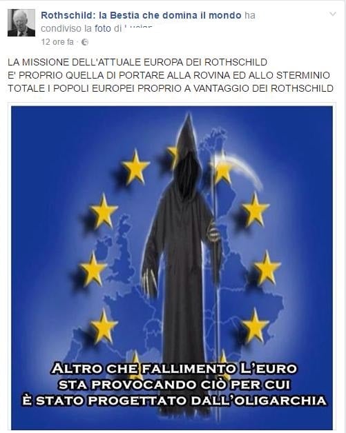 L’autore dell’articolo Paolo Sebastiani afferma che «La famiglia Rothschild tiene le redini dell’economia globale. Da oltre 200 anni.» e ha sempre prosperato, anche e soprattutto, durante guerre ed eventi sanguinosi «Quando scorre il sangue per le strade è il momento di comprare». I Rothschild avrebbero in pugno «la moneta» di tutti i paesi del mondo, la Federal Reserve americana e la Banca Centrale europea, il presidente Usa Trump e quello francese Macron, alla cui elezione all’Eliseo avrebbe svolto un ruolo centrale «il trio Rothschild/Soros/Goldman Sachs». Anche il generale De Gaulle, Georges Pompidou o il Regno d’Italia sarebbero “creature” dei Rothschild, che esercitano un controllo su tutte le nazioni del globo.