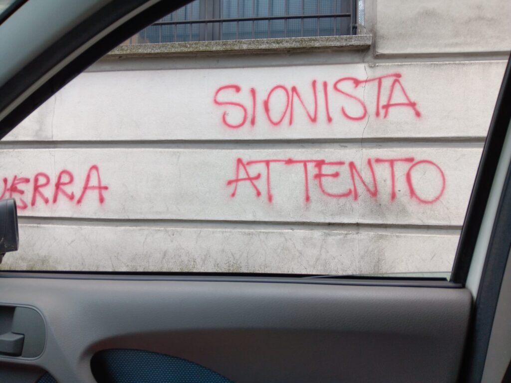 Lecco. Ignoti tracciano su un muro con vernice rossa la seguente scritta: «Sionista attento».