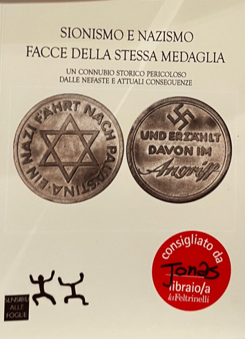 Una grande catena di librerie espone nella sua sede in Stazione Centrale il volume “Sionismo e nazismo. Facce della stessa medaglia” che sostiene l’esistenza di una convergenza ideologica e pratica tra il movimento sionista e il regime nazionalsocialista durante gli anni ’30. L’elemento più controverso del libro è l’uso sistematico dell’“inversione dell’Olocausto”. Il testo arriva a coniare e promuovere il termine “nazisionismo“, sostenendo esplicitamente che il sionismo rappresenti il “nazismo del XXI secolo”. Questa equiparazione viene estesa anche alla cronaca attuale, utilizzando i fatti successivi al 7 ottobre 2023 per tracciare un parallelo tra le metodologie repressive odierne e quelle della Germania nazista.