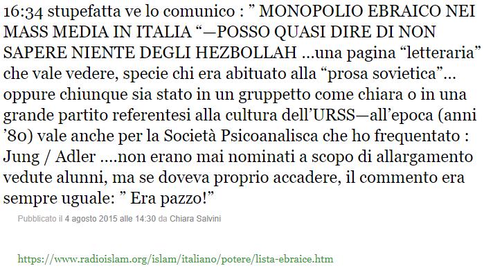 “Monopolio ebraico nei massmedia in Italia”