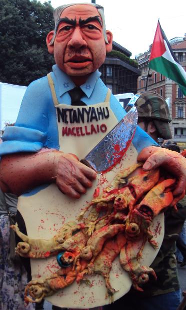 Sabato 26 luglio un gruppo di attivisti antisionisti con bandiere palestinesi ed un fantoccio rappresentante il primo ministro israeliani Benjamyn Netanyahu in veste di macellaio, è andato davanti alla sinagoga di Torino in piazzetta Primo Levi a distribuire un volantino antisionista ed a manifestare in favore di Gaza.