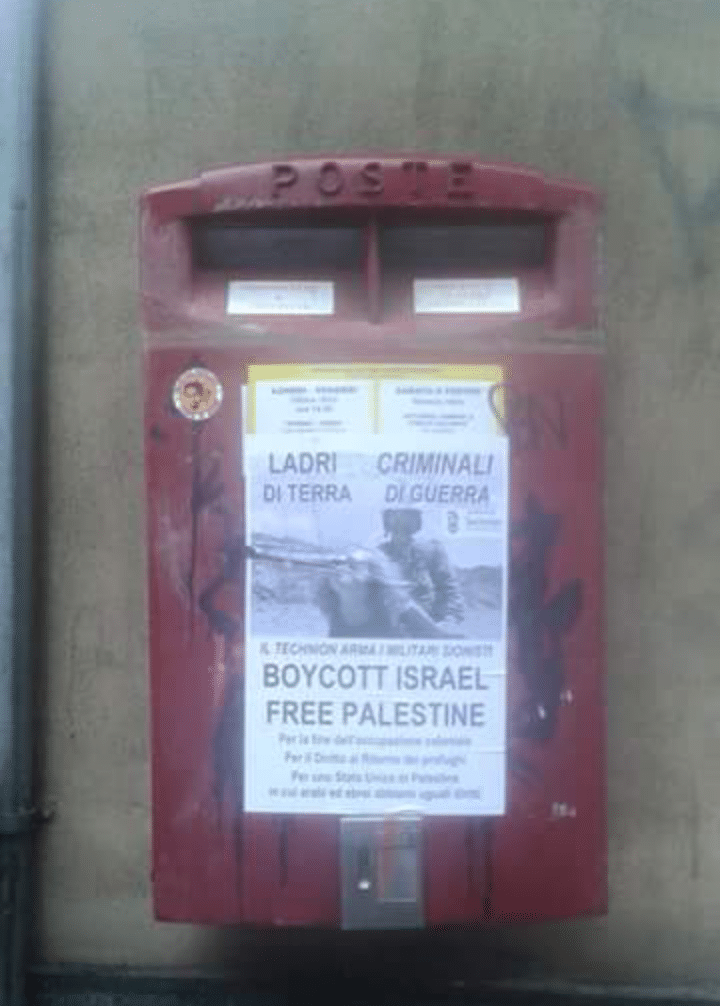 Stampa 7 Febbraio 2016 Manifesti antisionisti a Torino Luogo: Torino Fonte: Testimonianza BDS contro il Technion di Haifa In varie parti della città di Torino sono stati affissi dei manifesti che promuovono il BDS contro le università israeliane.