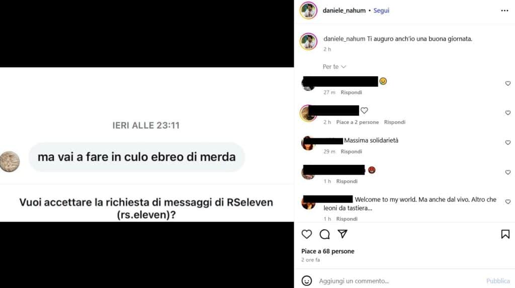 Daniele Nahum, consigliere comunale di Milano, riceve un messaggio offensivo su Instagram: <<ma vai a fare in culo ebreo di merda>>