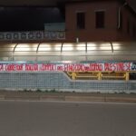 Sull’insegna in questione compare in inglese la scritta “dal fiume al mare costruisci la pace”, che riprende e modifica lo slogan «Palestina unica dal fiume al mare», in toni che anziché polarizzare cercano dialogo.