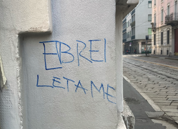 Milano, zona centrale nei pressi di un ospedale, tracciata con un pastello blu la scritta. Ebrei letame.