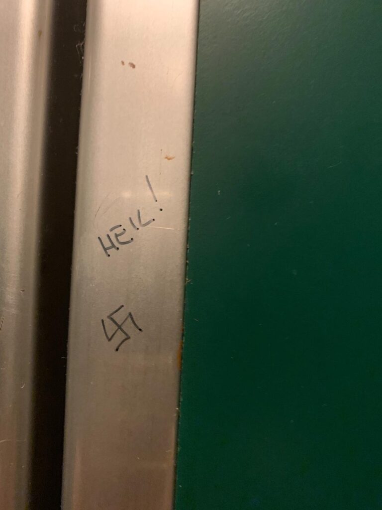 Stampa 9 Marzo 2025 Milano, scritta antisemita Luogo: Milano Fonte: Segnalazione CE «Heil !» Milano, in un’area dove vivono molte famiglie ebraiche, ignoti disegnano una svastica corredata dal saluto nazista «Heil !».