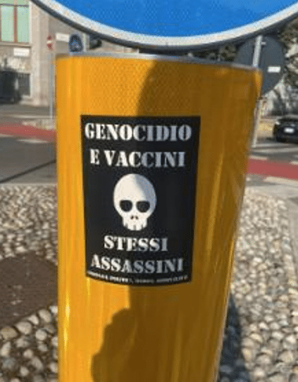 Piazza Michelangelo Buonarroti, “GENOCIDIO E VACCINI STESSI ASSASSINI”.