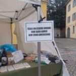 Monza, ambulante che vende prodotti alimentari biologici espone una bandiera palestinese ed il seguente cartello: «Sono un essere umano non sono ebreo no sono americano».