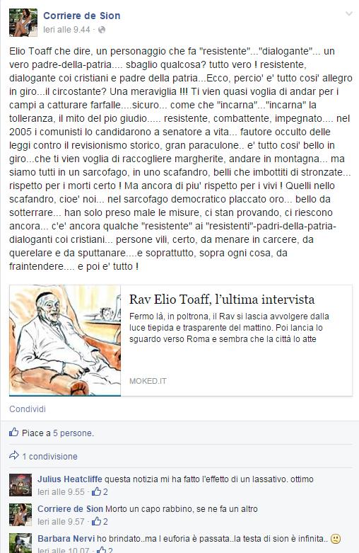 corrieredesion_toaff Pubblicata il 21 Aprile 2015 alle 508 × 781 in Morte di Rav Elio Toaff, episodi di antisemitismo