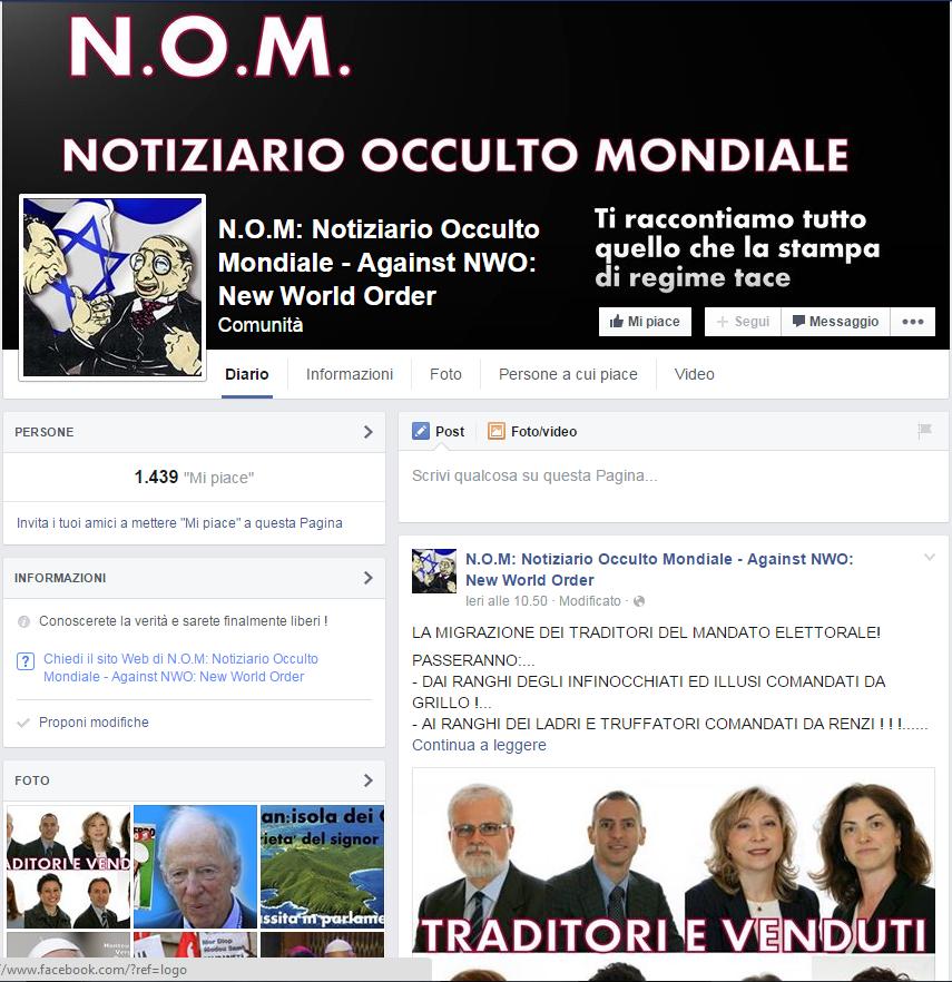 N.O.M. Notiziario occulto Mondiale è un profilo Facebook complottista che si autodefinisce in questo modo: