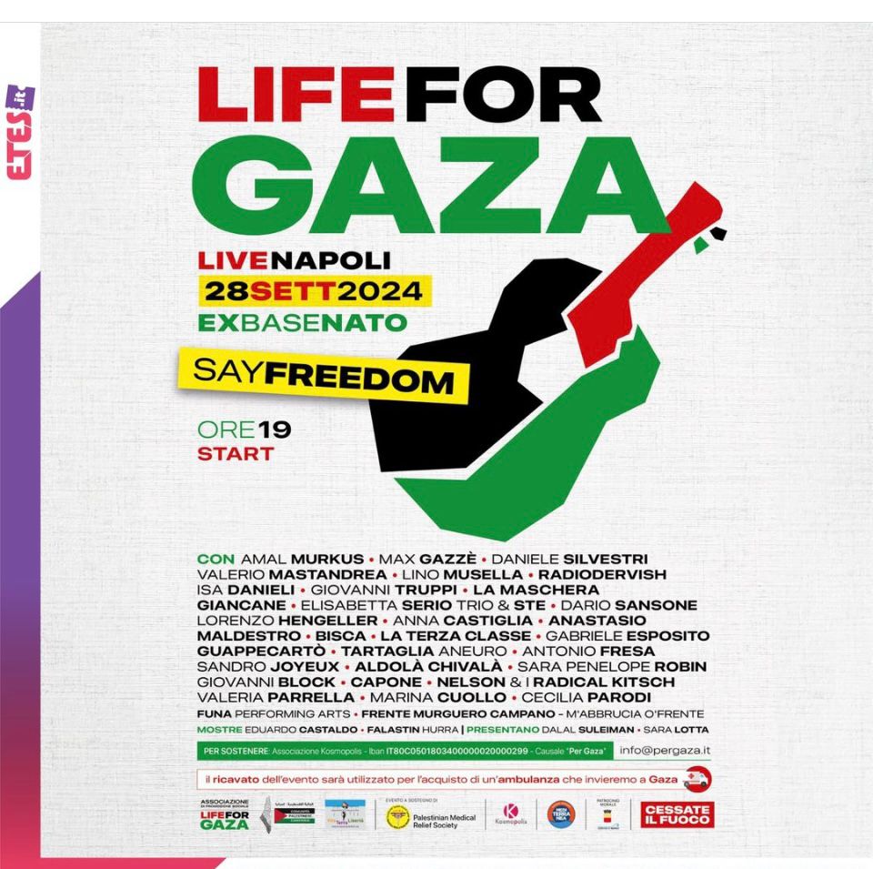 Napoli, patrocinio morale del Comune a “Life for Gaza” concerto pro pal