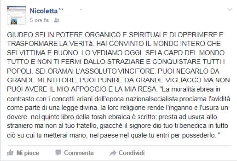 giudeopadrone Pubblicata il 30 Dicembre 2016 alle 486 × 330 in Nicoletta V. , profilo Facebook antisemita