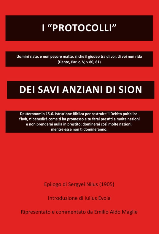 Stampa 22 Luglio 2021 Nuova edizione dei Protocolli dei savi di Sion Fonte: Segnalazione CE I “Protocolli” dei savi anziani di Sion Piccolo editore pubblica una nuova edizione – di stampo apologetico – dei Protocolli dei savi di Sion, il più famigerato libello antisemita.