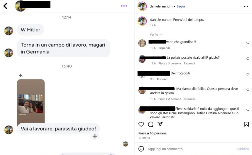 «W Hitler», «Torna in un campo di lavoro, magari in Germania», «Vai a lavorare, parassita giudeo!», messaggi inviati al consigliere comunale di Milano Daniele Nahum su Instagram.